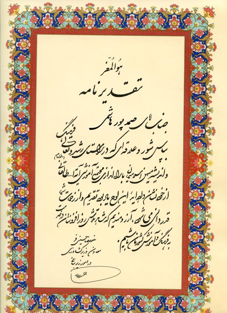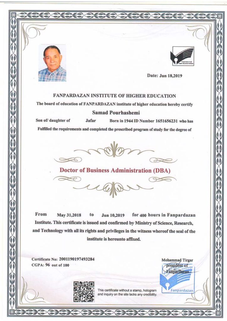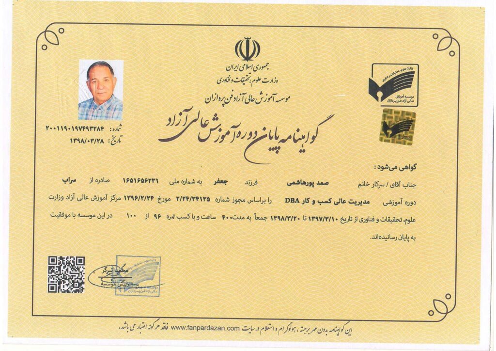 برخی از افتخارات و مدارک کسب شده: