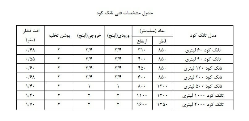 اندازه و مشخصات تانك كود نيز با استفاده از كاتالوگ شرکتهای سازنده و بر اساس ظرفيت شبكه تعيين می شود. آب اين مخزن را نيز مانند ساير مخازن در غير فصل زراعي بايد به منظور جلوگيري از يخ زدن خالي نمود. لازم به ذكر است كه در پاره اي از موارد به جاي تانك كود از ونتوري و يا تزريق كننده كود كه به كمك پمپ جانبي به سيستم تزريق مي شود، استفاده نمود. مكانيزم كار تانك كود به اين صورت است كه محلول كود مايع از داخل مخزن به تدريج و به نسبت با آب تصفيه شده، در اختيار گياه قرار مي گيرد.